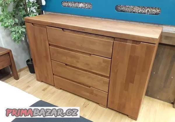Vybavení: 4x zásuvka s plnovýsuvem, 2x policový prostor s dvířky. Komoda je k prohlédnutí na prodejně Domestav v OC Šestka, Praha- Ruzyně. Ihned k odběru.