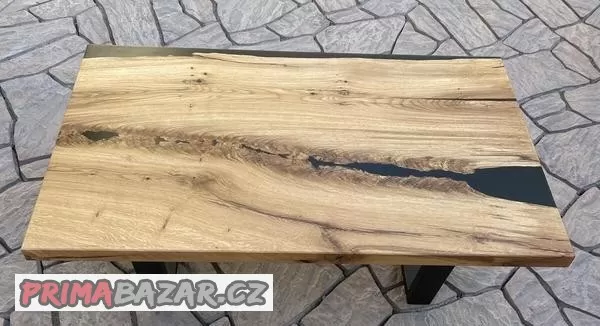 Celý stolek je ošetřen olejem rubio, který chrání dřevo a epoxid. Olej je nezávadný a je vhodný pro styk s potravinami.