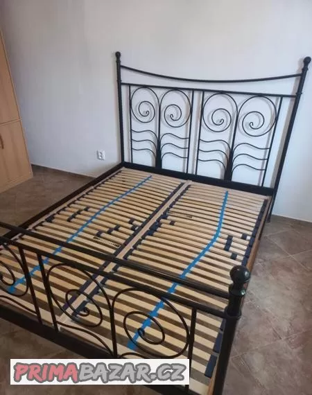 Kovová dvojlůžková postel (včetně roštů)