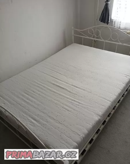 Prodám kovovou postel s roštem a matrací zdarma rám postele v dobrém stavu jen je praskla jedna lamela u roštu viz foto dá se vyměnit cena 1500kc osobní odběr Praha 9letnany