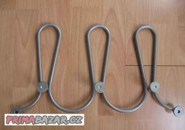 Nabízím krásný a jednoduchý moderní věšák z šedého kovu. Na věšáku je možno zavěsit 6 různých oděvů či kabelek. Patrně zakoupeno v domě IKEA. Upevnění: na 2 šrouby (křížáky), ty jsou součástí. Rozměry: 39 cm (délka); 20 cm (výška); 4 cm (hloubka). Věšák je jako nový, minimálně používaný, nepoškozený. Praha. Cena: 99 Kč.