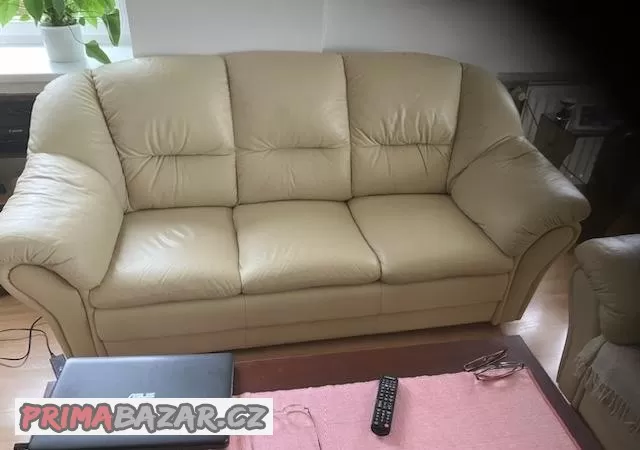 Prodám zachovanou koženou pohovku krémové barvy. Nutný odvoz.