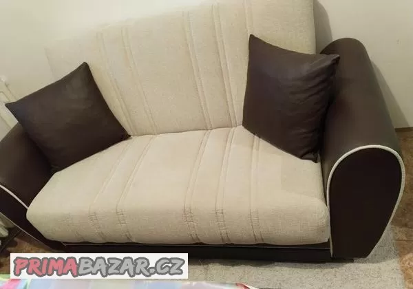 Na predaj ponúkam rozkladaciu pohovku s úložným priestorom, smotanovej farby , boky sú kožené - farba hnedá.