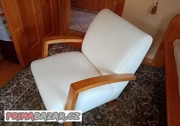 Prodám dvě luxusní pohodlná křesla zn. WIENA, jemná bílá kůže "ADRIE WHITE" s dřevěnými dubovými područkami, vyrobená na zakázku. Díky dubovému dřevu velmi pevná konstrukce. Nevhodný dárek rodičům. 8.000,-Kč/ks, při rychlém jednání možná sleva 1.000,-Kč.