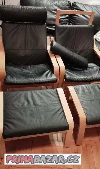 2 křesla v provedení dub, kožené polstry (černá barva kůže) s odnímatelným podhlavníkem , všechny dílce čalounění je možné díky všitým zipům měnit. Možnost koupit samostatně, i bez polstrů, nebo jen polstry ...