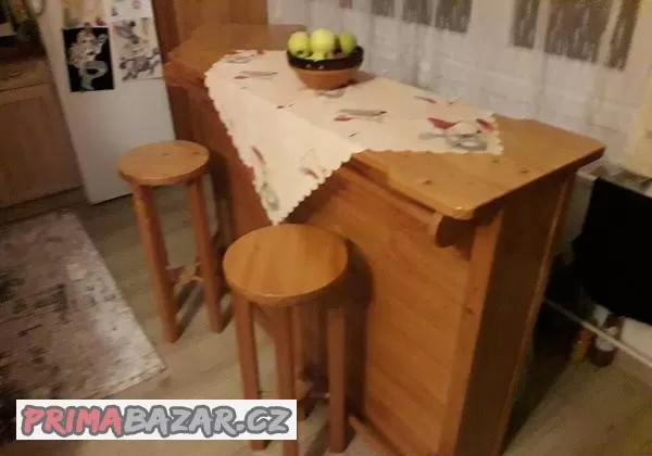 Prodám kuchyňský bar z masívu (smrk), deska ve tvaru hokejky.