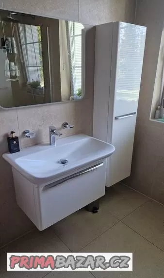 Prodám zánovní koupelnovou sestavu, vysoký bílý lesk, ve výborném stavu. Rozměry závěsné skříně (v/š/h) jsou 150/40/25, rozměry umyvadlové skříně 40/68/41.