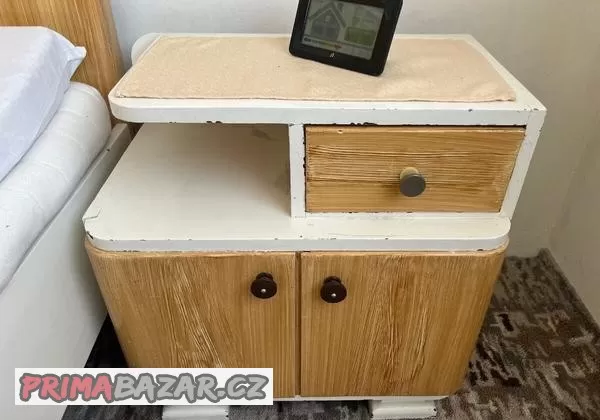 Dovoluji si nabídnout k prodeji nábytek vyrobený na míru z roku 1948. Jedná se o dvě skříně, dvě postele, dva noční stolky, stůl + 3 židle, odkládací stolek a toaletní stolek se zrcadlem. Cenu prosím nabídněte, k odběru v Mariánských Lázních.