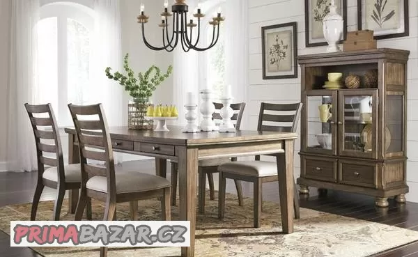 Ponúkam na predaj úplne novú,luxusnú jedáleň vo vidieckom štýle. JE IHNEĎ K ODBERU. CENA JE 4786 EUR. V cene je stôl so šuflíkmi,osem stoličiek a dve vitríny. DOPRAVU ZABEZPEČÍM. POZRITE AJ NA OSTATNÉ MOJE INZERÁTY.