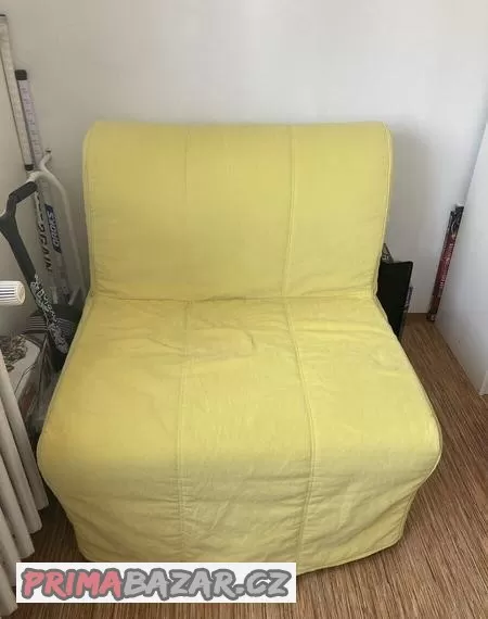 Rozkládací křeslo. Používané na občasné přespání v dětském pokoji. Malý flíček na potahu matrace. Cena nového 4990,-nutný odnos ze 4 patra bez výtahu