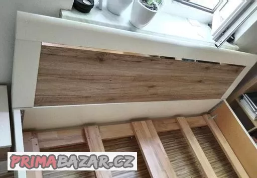 Prodám tuto použitou postel velmi kvalitní a pevnou postel . na čele jsou odlepené flíčky ,není moc vidět.