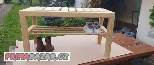 Prodám masivní akátový botník ruční výroby. Odložení bot na šprušle nebo dolú, kde je možnost umístění plastové vaničky na boty, které budou třeba mokré z venku.