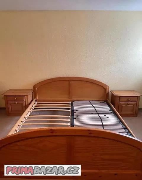 Masivní ložnice, lůžko 180 x 200 cm, šatní skříň, komoda, zrcadlo, 2 x noční stolek.