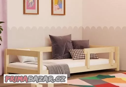 V zaruce, 90x200, Z masivniho nelakovaneho dreva, se zabranou ktera je posuvna a muze se umistit kamkoliv. Postel je nizka, takze velmi prijemna pro dite ktere si na to muze vlezt. Vyuzivana jeden rok.