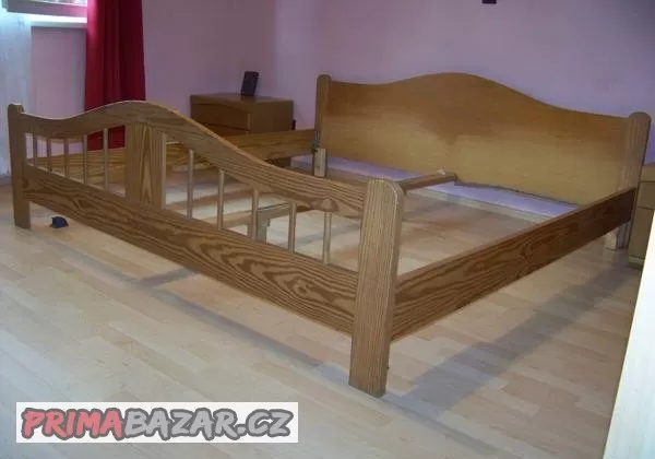 Masivní postel 2m x 2m včetně 2x rošt a 2x matraze