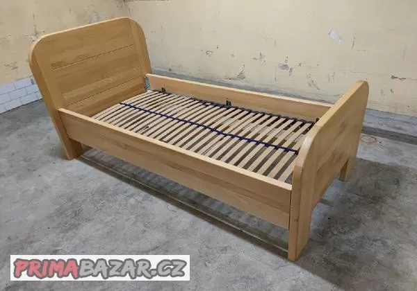 Masivní a velmi pevná postel s roštem. Postel ma u hlavy vysoké čelo 100Vx110Š u nohou je čelo 70Vx110Š. Pořádná postel. Cena s kvalitním roštem komplet. Potřebuji prostor tak dávám slevu.