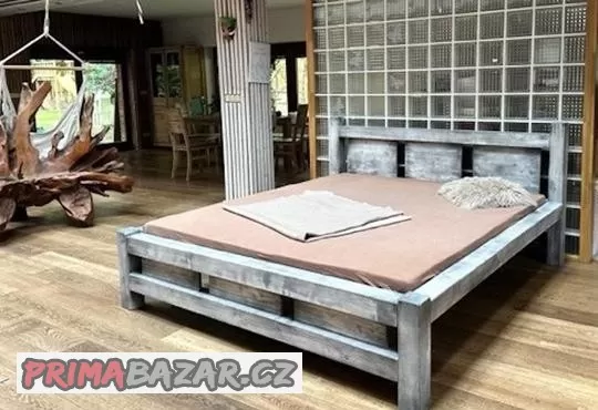 Masivní, trámová postel 180 x 200 rošt patina