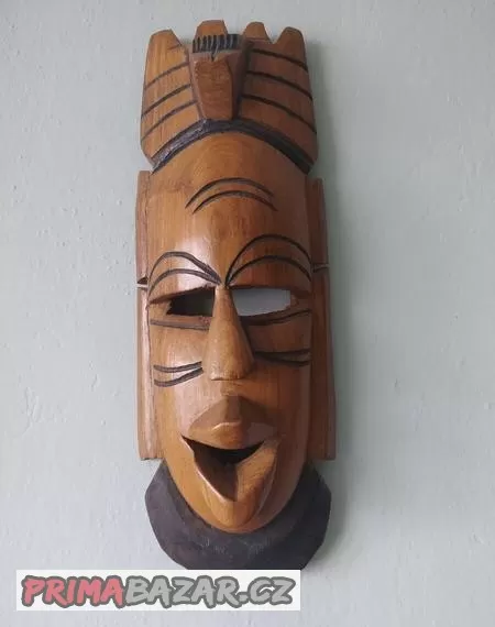 Dřevěná maska k pověšení na zeď, výška 37 cm, velmi dobrý stav. Platba předem na účet. Zaslání poštou nebo zásilkovnou.