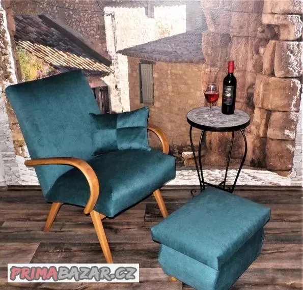 Nabízím v TOP stavu menší křeslo Halabala s úložnou podnožkou a polštářkem vše viz foto.