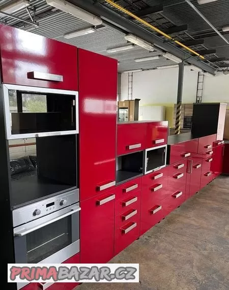 Moderní lesklá červená linka + spotřebiče(282024)