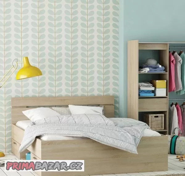 Multifunkční postel 160x200 zásuvkami, rošty a matrací. Dub