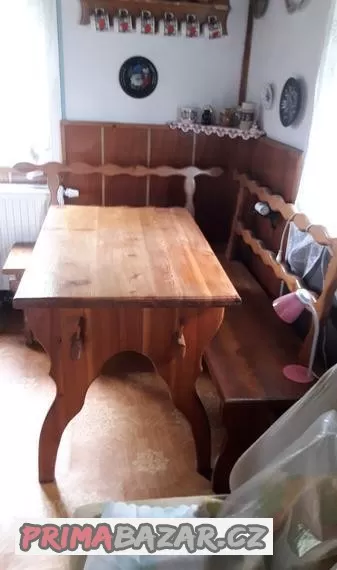 Prodàm starožitný nábytek přìborník,stůl,rohovà lavice a tři židle cena 30.000kč.