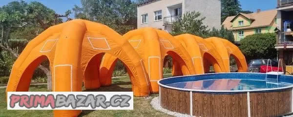 Prodám nafukovací stany Spider zakoupené v TKF.cz.Stany jsou vyrobeny z PVC materiálu a jsou voděodolné.Součástí každého stanu je ventilátor, napájení 230 V, výkon 260 W.Každý stan má 4ks plných bočnic (zapínání na zip) ve stejné barvě jako je stan, 4ks upevňovacích kolíků a 4 ks mezistanových propojek.Každý stan má svůj obal.Rozměry jsou 3,5 x 3,5m a výška je 3 metry.Původní cena 4 ks byla 192 000,-.Nyní 48 000,- za všechny.Neprodávám po kuse, pouze jako komplet.