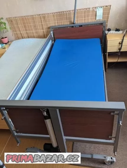 Prodám nemocniční postel. Polohovací, elektricky ovládaná s hrazdičkou a nastavitelnými bočními zábranami na obou stranách. K posteli je stolek a matrace. Vse plně funkční.