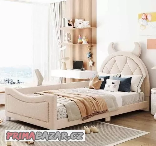 Tato postel je nejlepší volbou pro dětské postele. Čelo postele má roztomilý tvar rohu pro větší zábavu. U hlavy a nohou postele jsou ozdobné diamanty, které mají jedinečný styl a smysl pro design. Tato postel má opěradlo, čelo a čelo na nohy. Lze ji použít jako rozkládací pohovku nebo jako dělené lůžko pro rodiče a děti. Umístění v místnosti lze libovolně zvolit a různé možnosti umístění lze také přizpůsobit vašim potřebám, protože se zohledňují různé požadavky na prostor. Tato postel nabízí vám i vašemu dítěti maximální pohodlí a bezpečí. Robustní dřevěná konstrukce rámu a systém dřevěných roštů zajišťují dodatečnou stabilitu a bezpečnost.