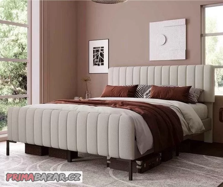 【Pohodlný zážitek】Postel je vybavena lněným potahem a čalouněným čelem vysokým 55 cm, o které se můžete opřít při čtení nebo sledování televize.