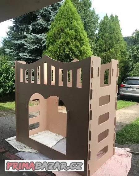 NOVÁ masivní palanda s lůžky 90*200. Vyrobená na CNC fréze z bukové překližky s certifikací na dětské hračky (tzn. BEZ formaldehydu). Je potřeba sbrousit a natřít. Rošty, latě na rošty a matrace nejsou součástí.