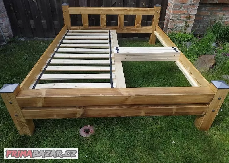 Určena pro matraci o rozměru 160x200. (po domluvě možné vyrobit i jiný rozměr). Délka postele je cca 220cm, šířka cca 167cm. Cena je bez roštu, ten je možné také dodat. Cena roštu pro postel 160x200 je 1200kč K posteli je možné vyrobit i noční stolky, či šuplíky pod postel.