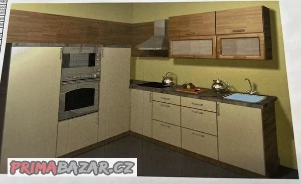 prodám novou kuchyň, pouze vystavená na prodejně. obrázek je nakreslený v počítači, reálnou fotku bohužel nemám, jedině přijet se podívat osobne.