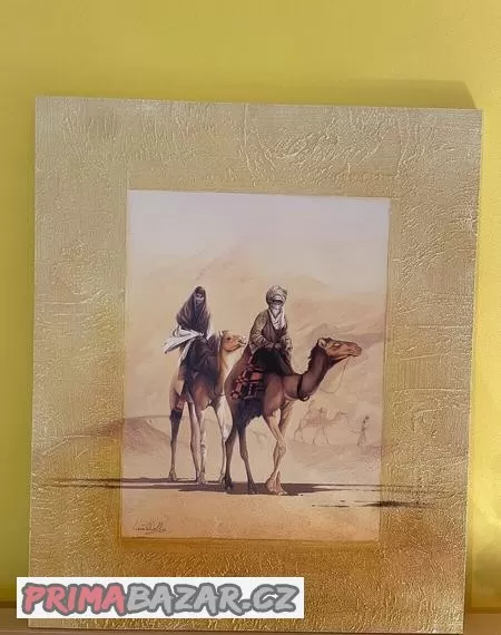 Krásný obraz, TOP stav, bez poškození, jako nový. Velbloudi v poušti.