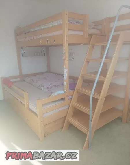 Nabízím palandu značky Domestav. Včetně schůdků, matrací (90 x 200, 160 x 200) a dvou šuplíků.