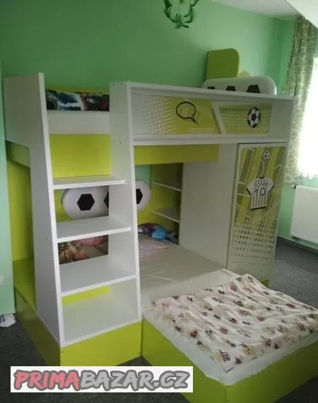 Nabízím k prodeji velmi krásnou, dovolím si i napsat, že skoro novou palandu / poschoďovou postel. Odstín zelené je přesně takový jako je na fotkách.