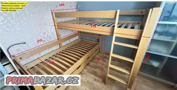 Dobrý den, prodám palandu ve tvaru "L". Velmi robustní buková konstrukce. Další info telefonicky. Cena k jednání