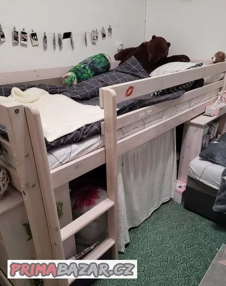 Pouzivána chvíli.budu prodávat....klasika velikost 2m krát 90cm matrace.pro menší pokoj,kde se potřebuje misto super..vleze se pod postel plno věcí...stolek výsuvný jsme nepoužívaly..komody na veci...předání Brno...cena za vše