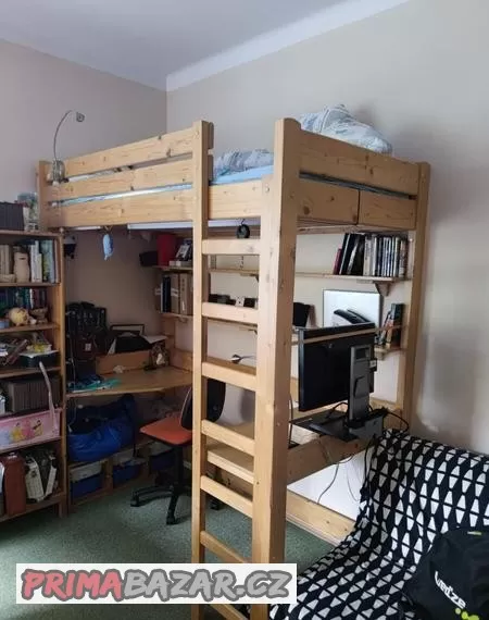 Patrová Postel 1,9 m se stolem použitá Smrk