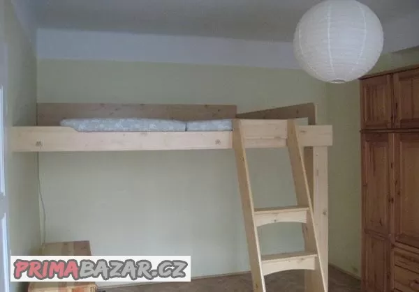 Prodám patrovou manželskou postel bez matrací. Postel je cca 160 cm nad zemí, šířka je 232 cm, délka 202 cm, vlastní lůžko je 200 x 180 cm.