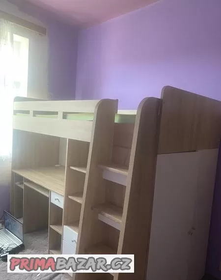 Dobrý den, prodávám půl roku používanou, jako novou, patrovou postel, s menší šatní skříní a prostorem na psací stůl. Délka 2,02 m, výška 1,6 m a šířka 1,2 m. S matrací. K odběru v Železném Brodě. Cena 5000,- k jednání.