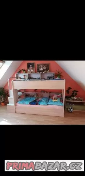 Prodám krásnou patrovou postel pro 3 osoby s úložným prostorem.