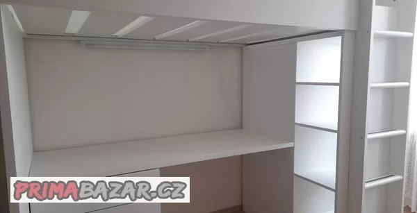 Prodam patrovou postel STUVA 90 x 200cm., bila. Psacim stolem a 4 zasuvkami. Je v heskem stavu,jenom mali skrabance na stole a supliku. Samoprivzeti.