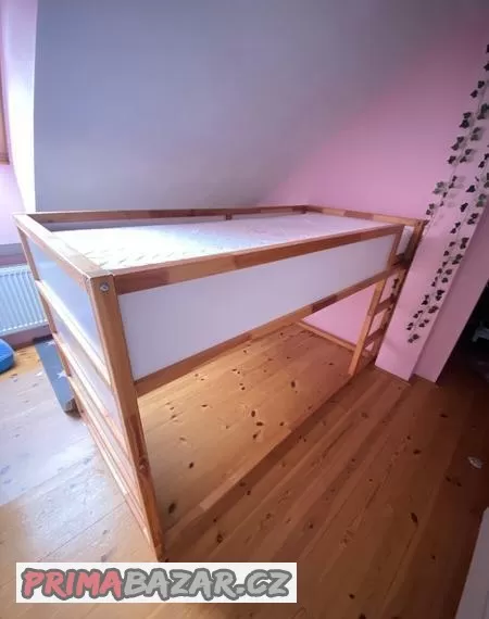 Prodám dřevěné dětské patrové postele 90x200 cm s roštem. Lze sestavit žebřík doprava i doleva a spací plochu nahoru i dolu. Mám 2 kusy. Při koupi obou kusů, cena za 1 bude 2000,- kč. Pouze vlastní odvoz. Adresa : Jaroslav 53401 TEL.: 702071393