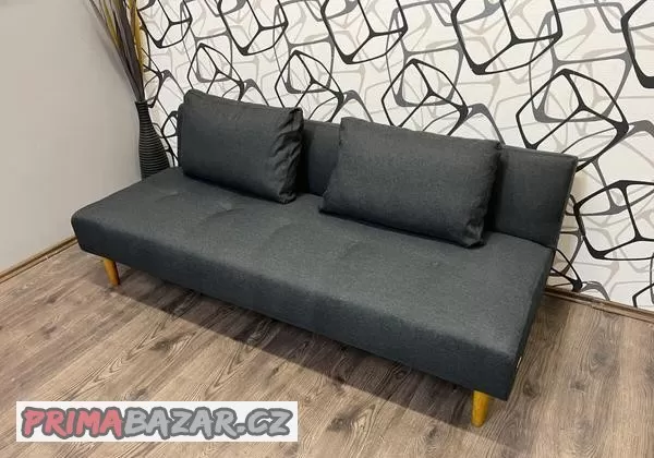 Pohodlná pohovka MATYLDA, čalounění textilní tkanina, dřevěné dubové nohy, barva tmavě šedá, rozměry: šířka 180 cm, výška 67 cm, hloubka 59 cm, výška sedu 82cm. Nová, nepoužívná, možno vidět a vyzkoušet v našem showroomu na Praze 7. Původní cena 7.990,-Kč.