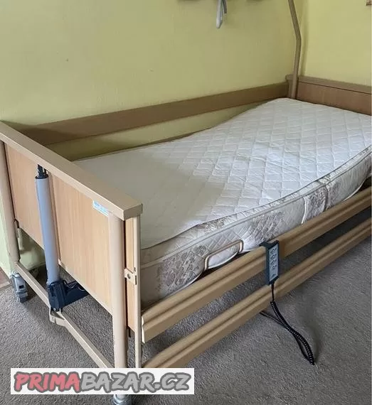 Polohovací postel s el. ovládáním, bezchybný provoz. Včetně omyvatelné antidekubitní matrace (není na snímku). Po dohodě můžeme dovézt.