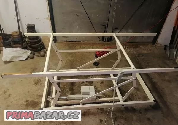 Polohovací postel s pohonem na 230 v. Maximální výška 73 centimetrů.
