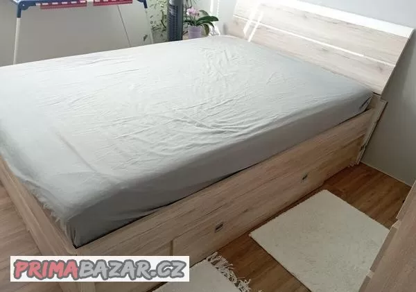Prodám postel 140x200. Dřevěný lamelový rošt. Jako nová, stáří jeden rok a půl. V čele zapuštěno led osvětlení. Cena postele bez matrace. Matrace také nová, mohu také prodat za 4600,-kč