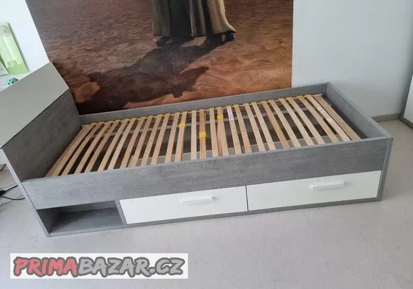 Prodám postel 200x90 se 2 šuplíky. Jde o kombinaci lesklé bílé a šedé.