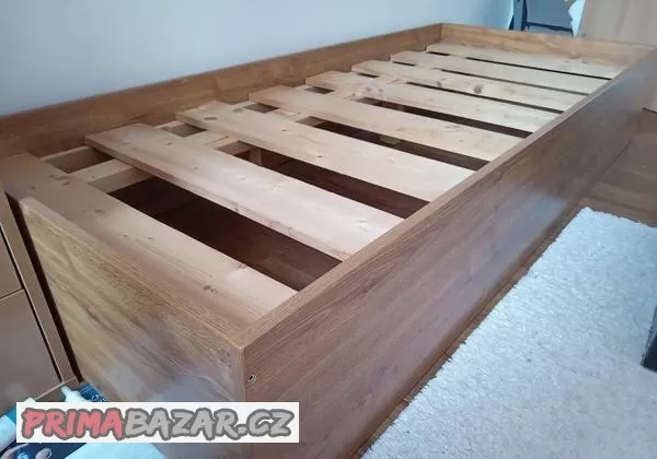 Prodám postel bez madrace - rošt pro madraci max 200x90 cm, vnější rozměr postele 204x91 cm, výška 35 cm. Pod roštem je úložný prostor - viz foto. Osobní odběr je možný v Praze 6 - Ruzyni.